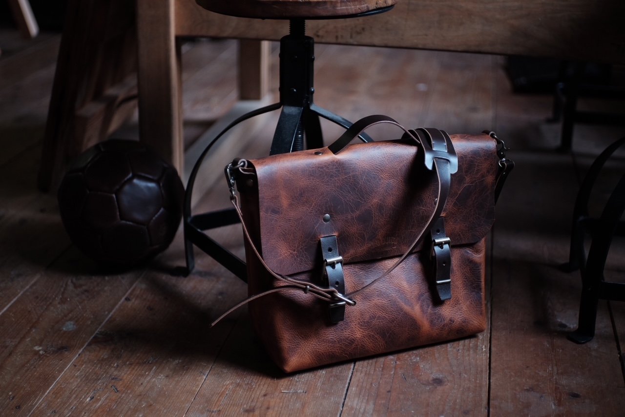 Handcrafted from Tuscan Badalassi Carlo Waxy Leather with English bridle leather straps and antiqued hardware. Durable, unisex, and built to age beautifully, the leather shows a distinctive pull-up effect, lightening subtly when bent or pulled and developing a rich patina over time. Features an inside pocket for small essentials.